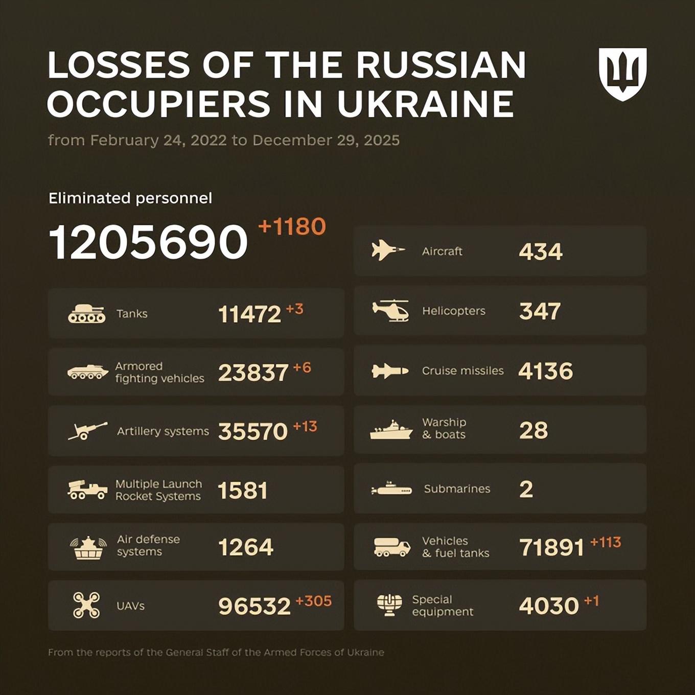 乌总参公布的昨日战果,歼敌(毙+伤)1180人。